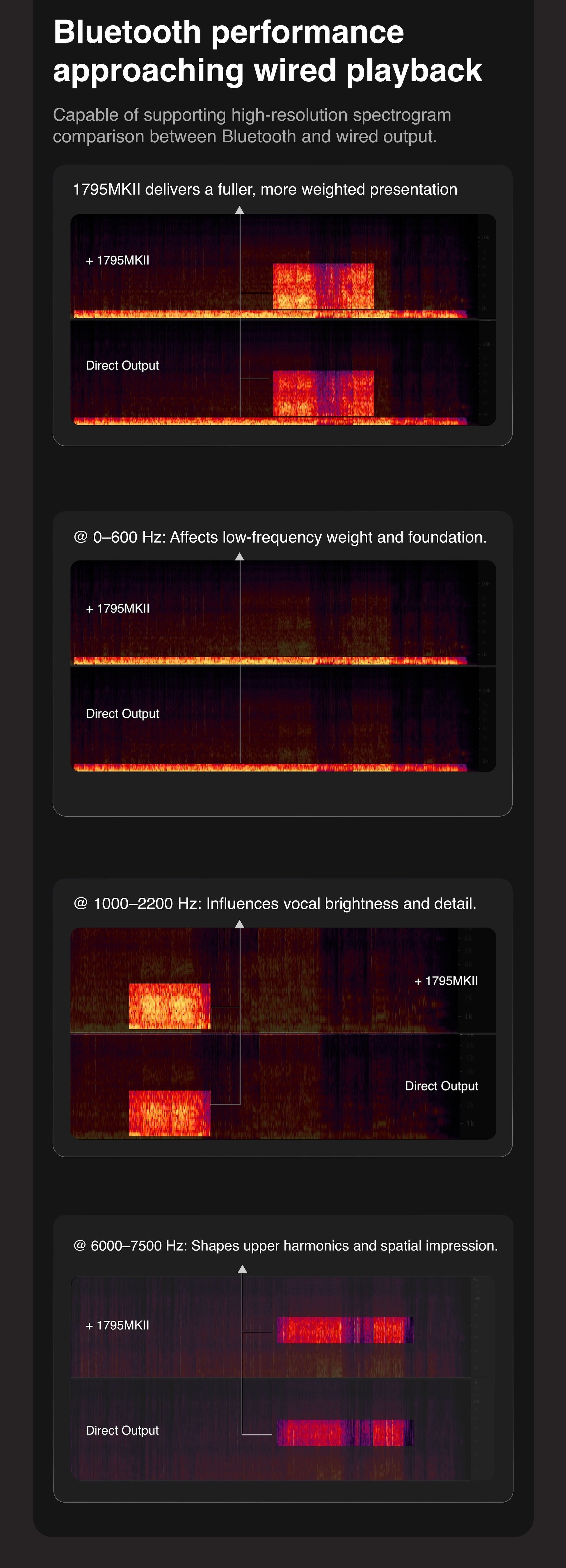 The calm aesthetic and premium metal construction immediately convey a fusion of old and new upon touch. The 1795MKII's sound signature perfectly aligns with this impression. It embodies a blend of classic design philosophy and contemporary circuit technology, pursuing a "matured sound" that makes you want to keep listening indefinitely.