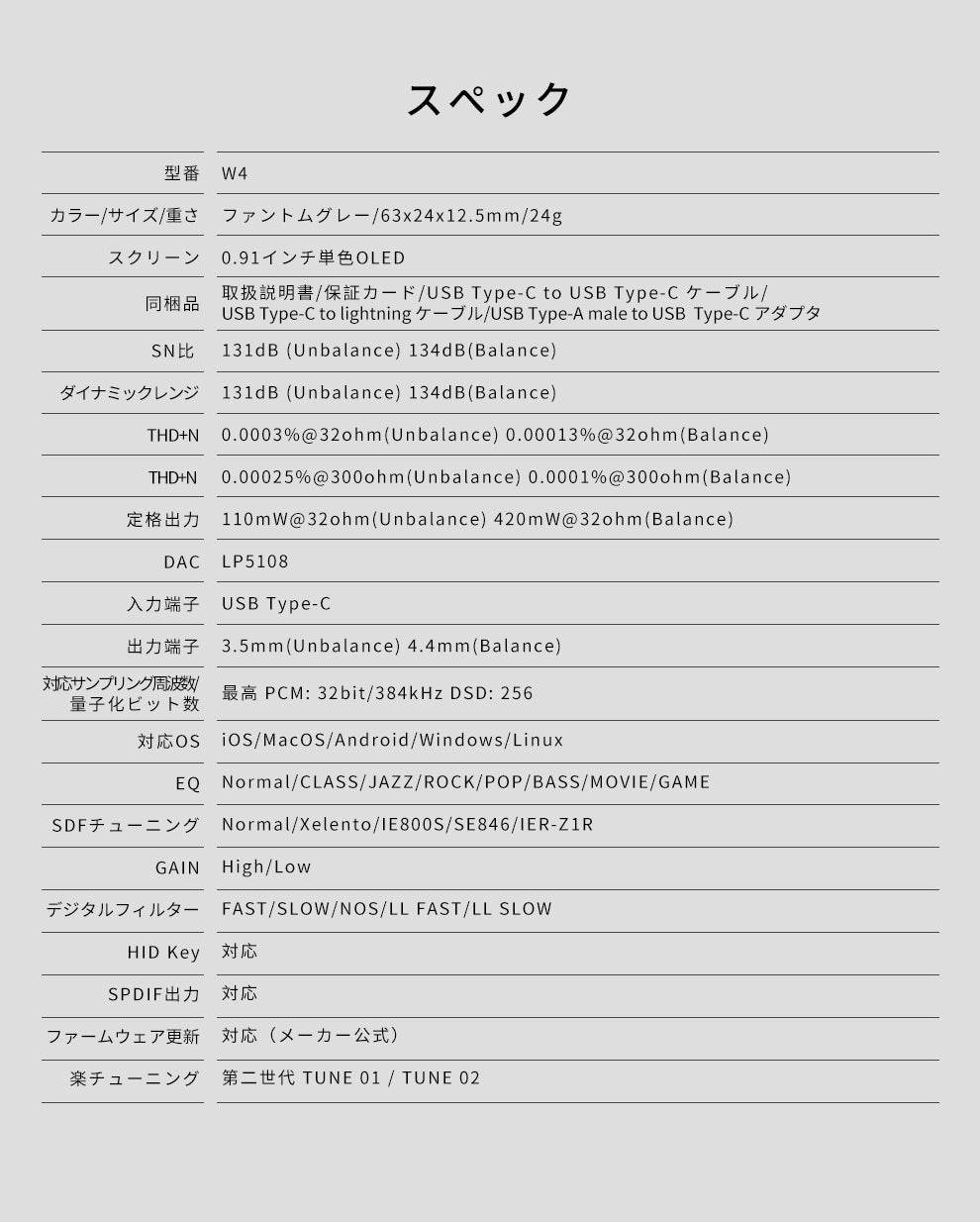 | THD+N | 0.0003% @32Ω (Unbalanced) |